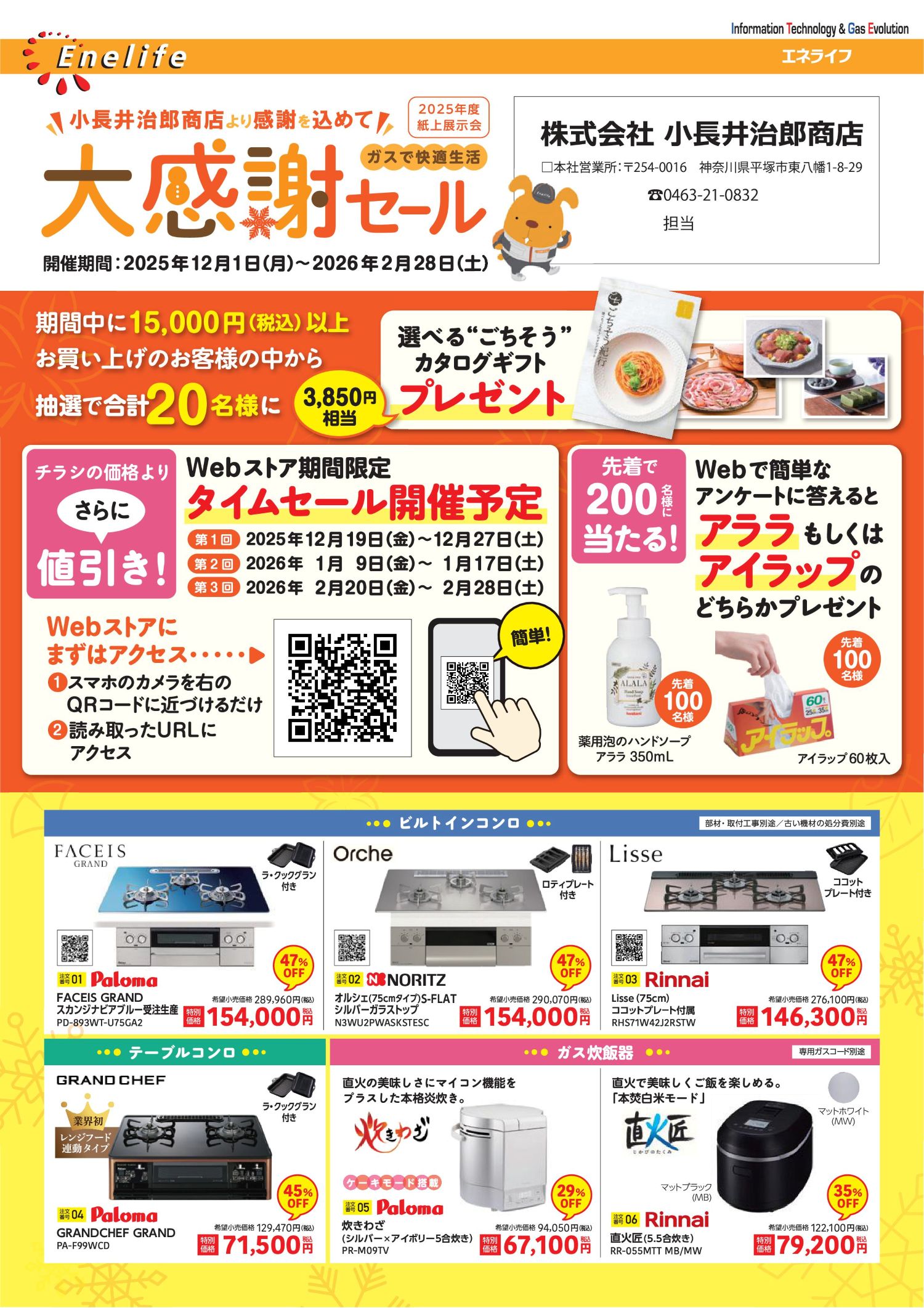 この度、小長井治郎商店では「大感謝セール」を開催しております。