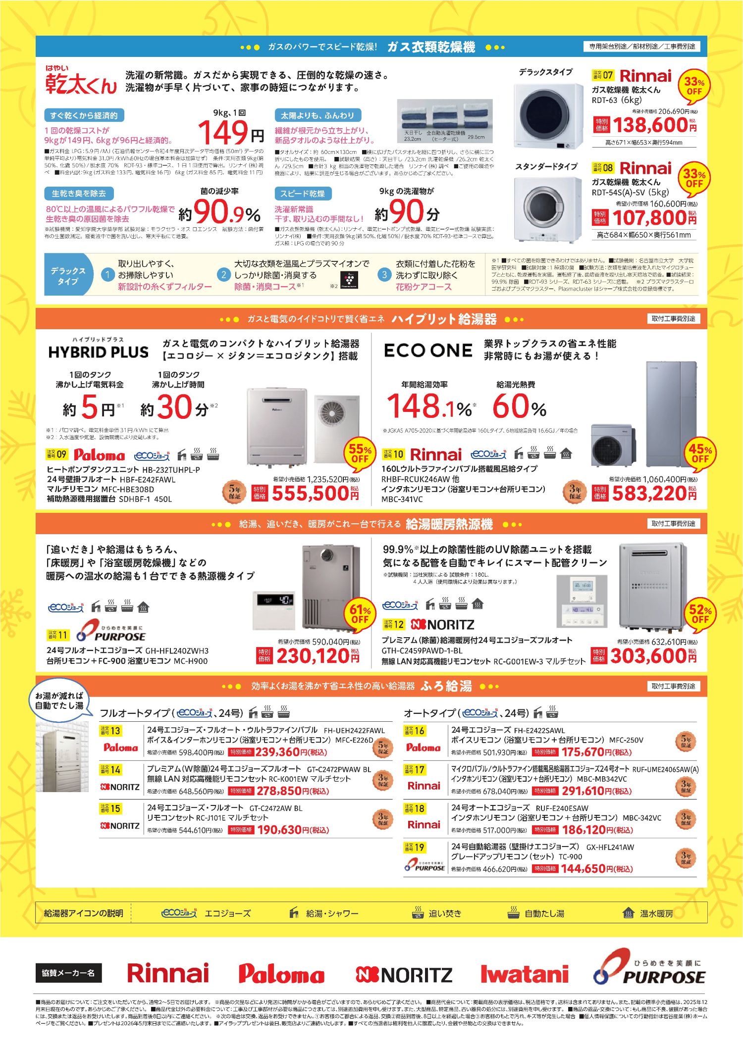 最新のガス機器や給湯器など、快適な暮らしをサポートする商品を特別価格でご案内しています